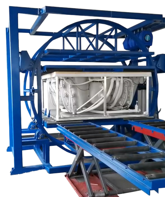 Our heavy-duty industrial bathtub tilter is a core piece of equipment designed specifically for the efficient, safe handling of bathtub shells during the manufacturing process—equipped with a stable hydraulic system and adjustable clamping mechanisms, it securely flips and positions bathtubs of various sizes and weights at precise angles, minimizing manual labor costs, reducing the risk of product damage during surface treatment, inspection, and assembly procedures, and significantly boosting production line efficiency to support large-scale, high-volume outdoor bathtub and spa manufacturing needs.